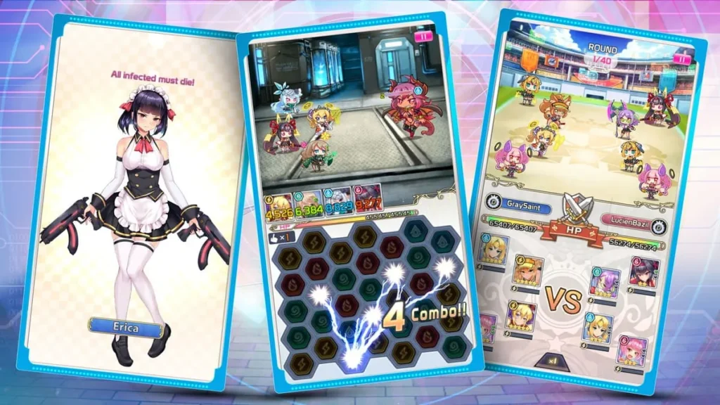 At its heart, every Project QT battle is a puzzle grid. Your goal is to match 3 or more gems of the same color within a limited number of moves. But here’s the genius twist: each color corresponds to one of your four squad members in that fight. 🧩